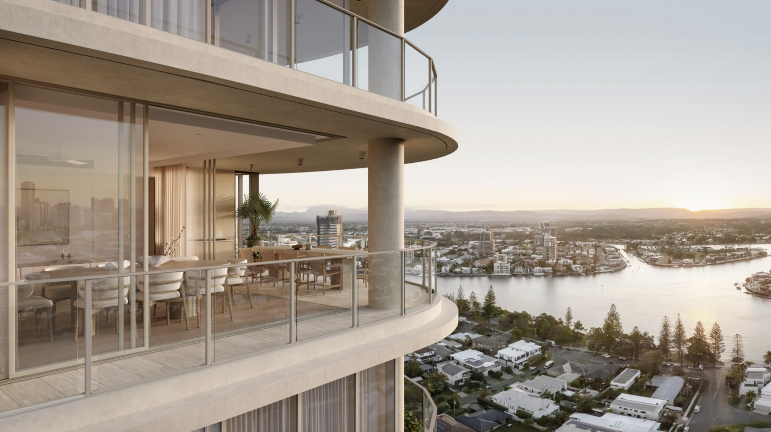 Crowning Elements is an exclusive rooftop retreat, featuring sweeping 360-degree views of the Broadwater, hinterland, Pacific Ocean, and Gold Coast skyline. World-class amenities include a rooftop pool, private dining areas, alfresco spaces, a sauna, and a fully equipped gym, designed for ultimate relaxation and entertainment.
